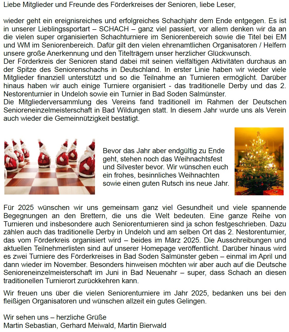 und Erfolg an unserem gemeinsamen Hobby auf den 64 Feldern.