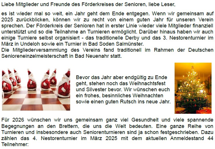 Liebe Freundinnen Freunde des Seniorenschachs,